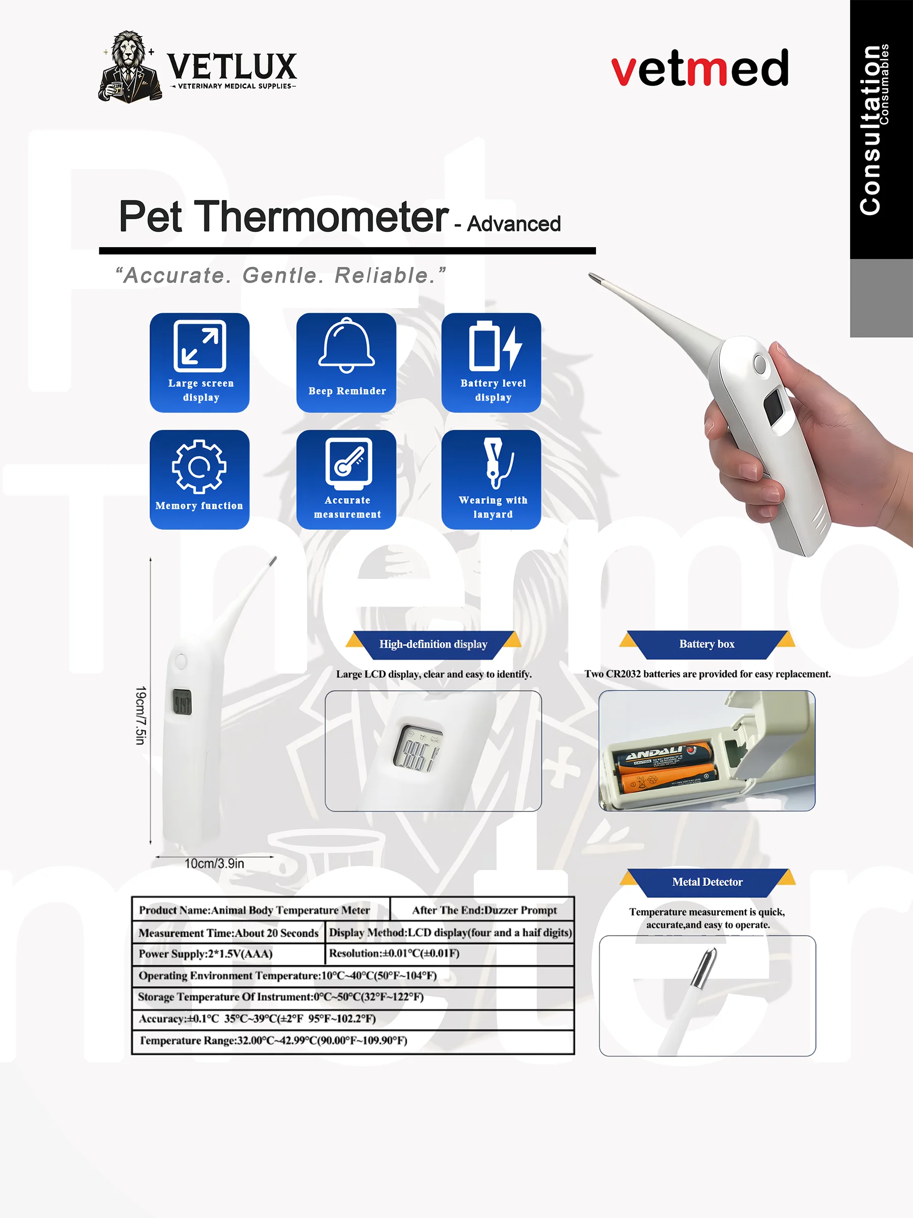 VETLUX Animal Thermometer – Advanced – Accurate. Gentle. Reliable.