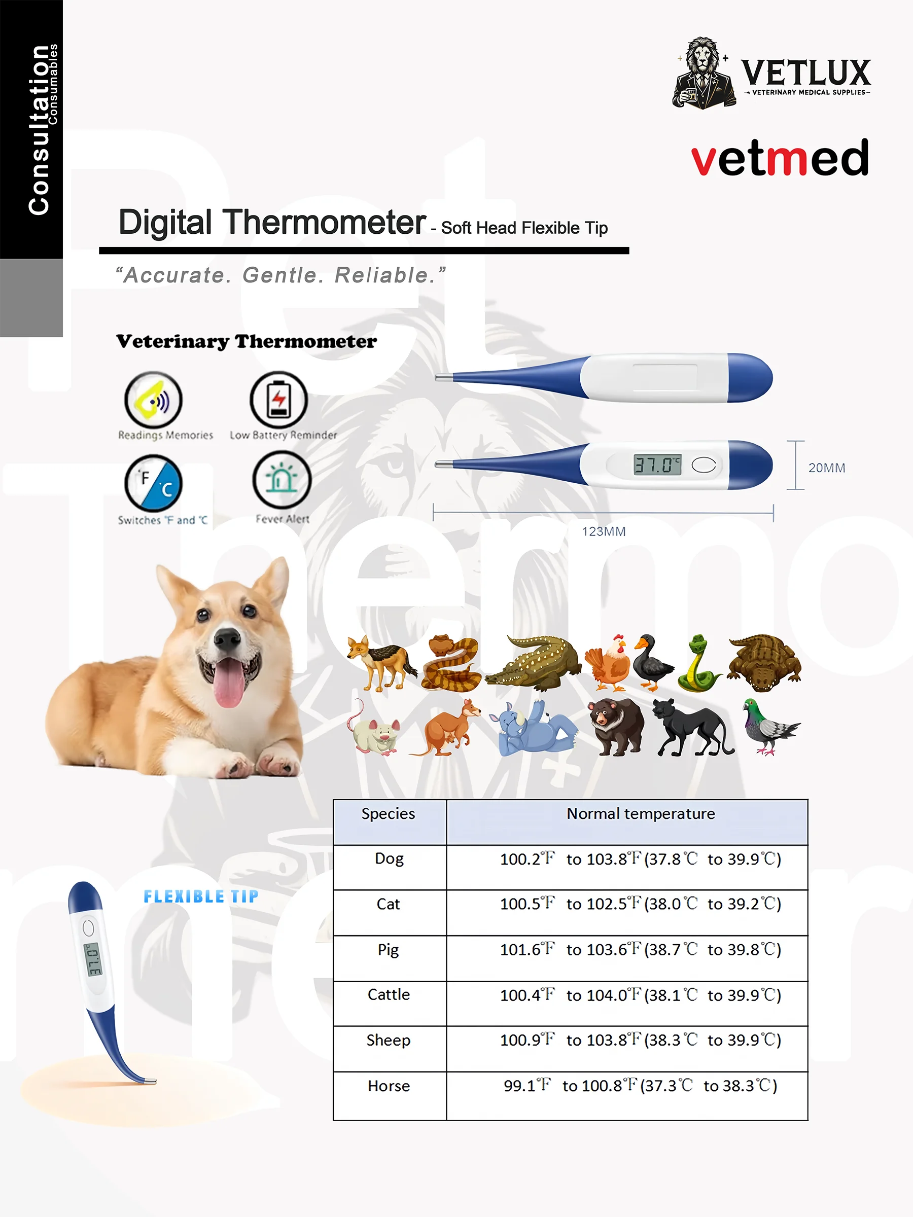 VETLUX Animal Thermometer – Soft Head – Accurate. Gentle. Reliable.