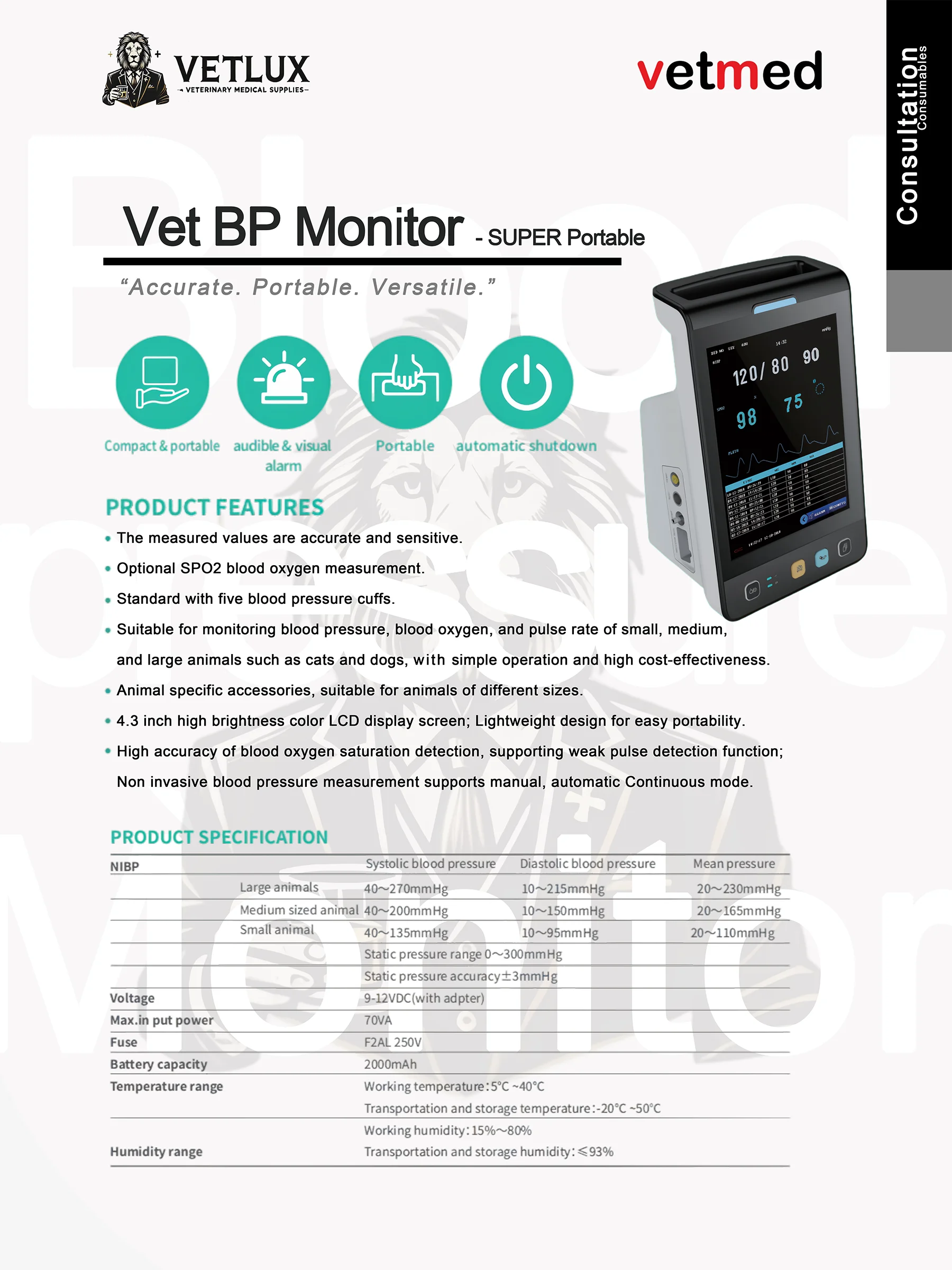 VETLUX VLBP M01 Vet Blood Pressure Monitor