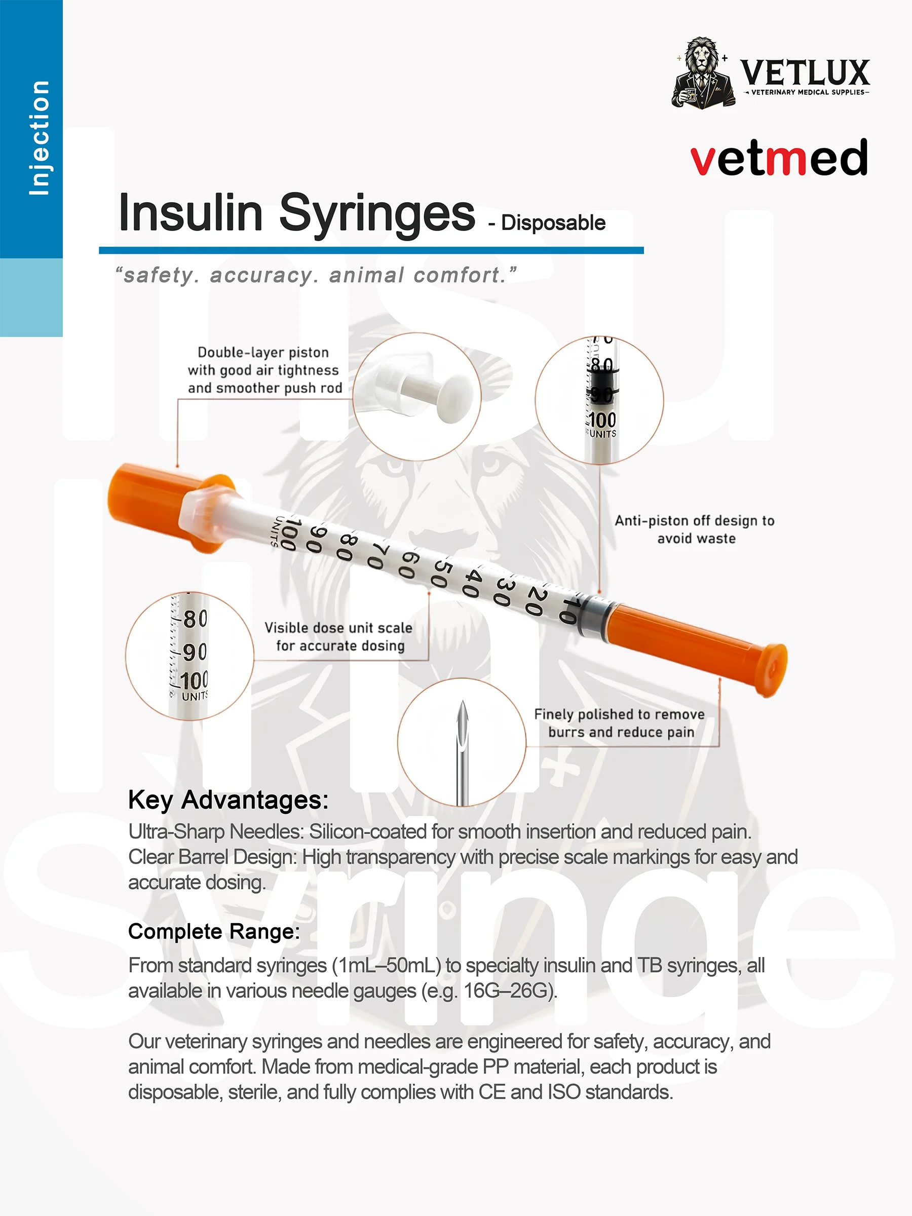 VETLUX Insulin Syringes – Disposable – safety. accuracy. animal comfort.