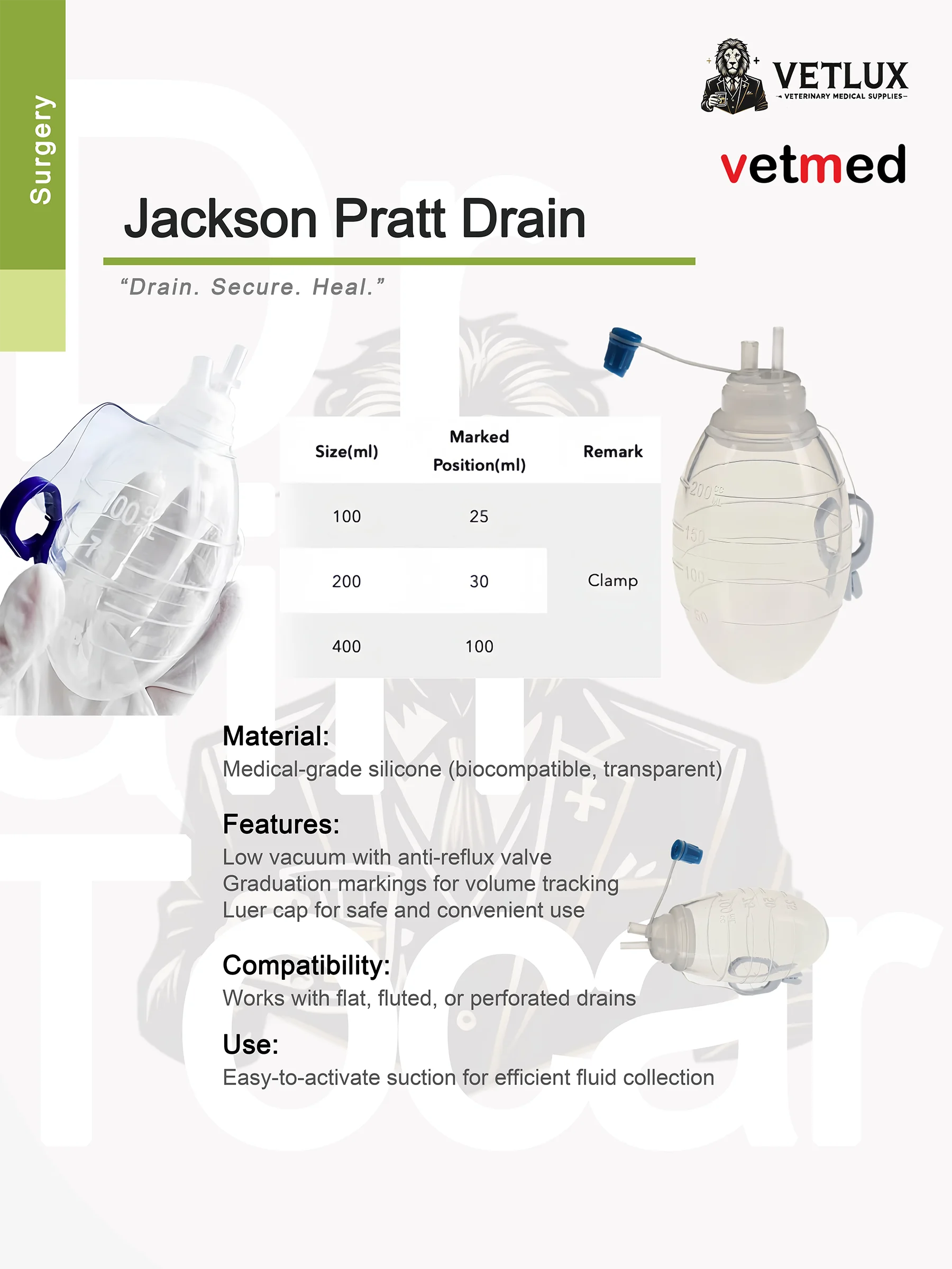 VETLUX Jackson Pratt Drain – Drain. Secure. Heal.