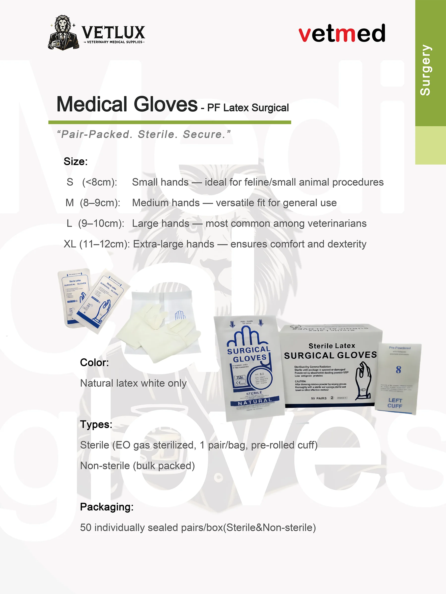 VETLUX Latex Surgical Gloves (Powdered) – Pair-Packed, Sterile, Secure