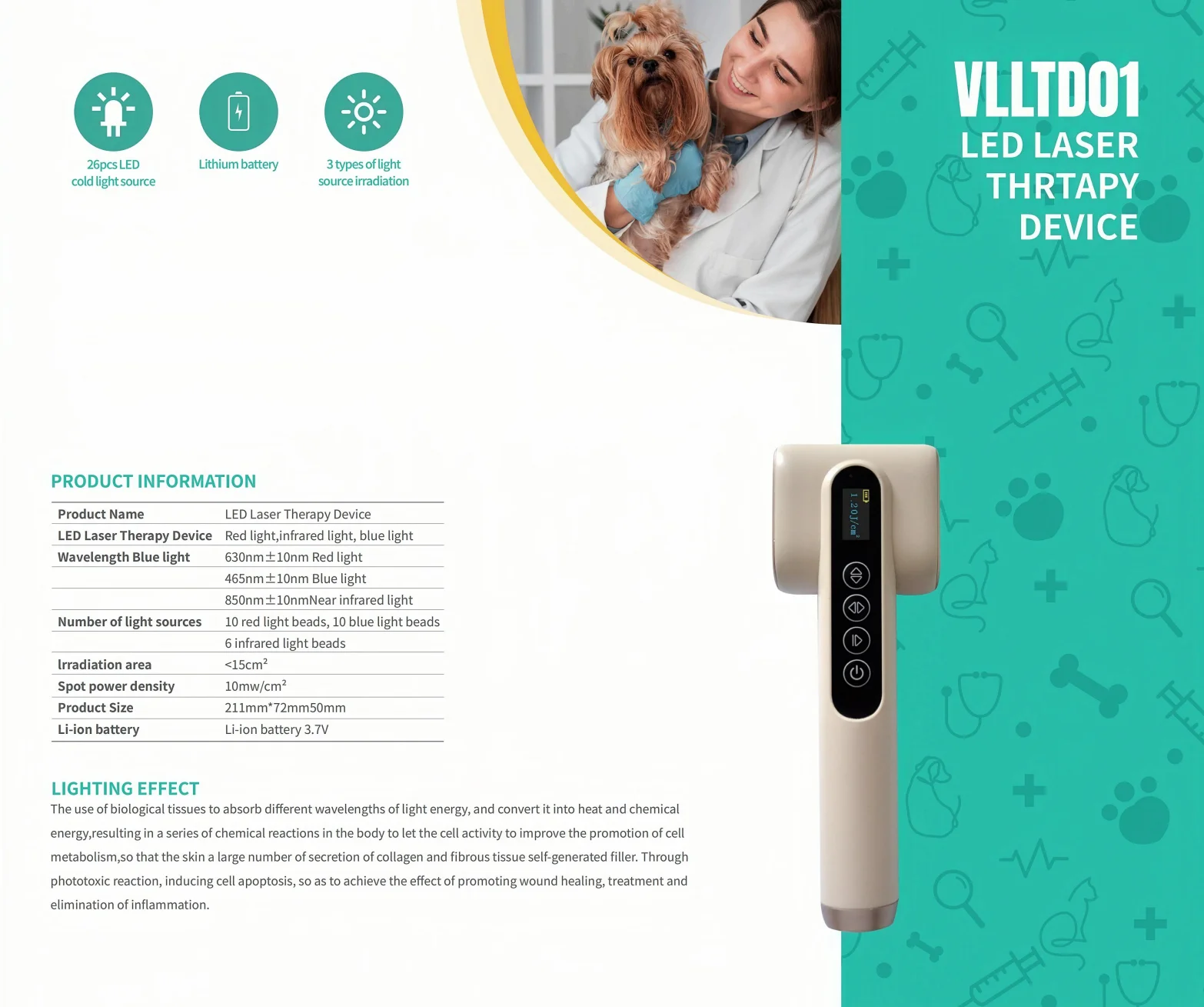 A veterinary-focused light therapy tool designed to support wound healing, reduce inflammation, and boost cellular activity in companion animals.