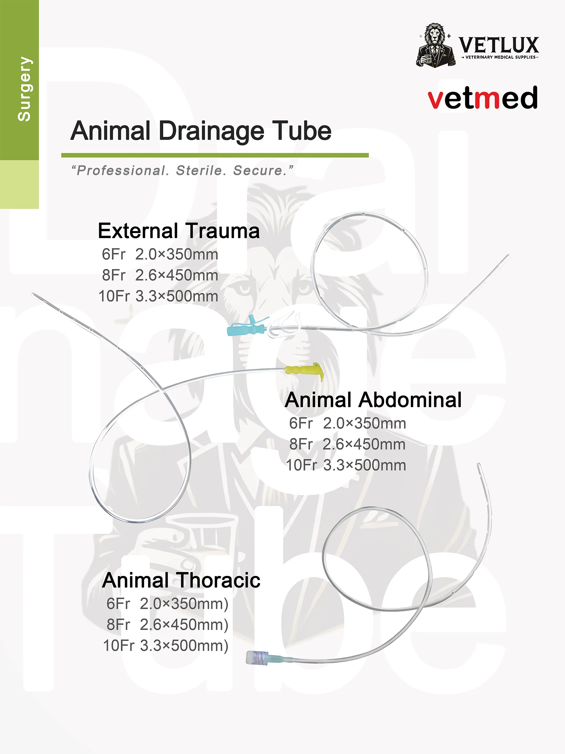 VETLUX Animal External Trauma Drainage Tube – Professional, Sterile, Secure