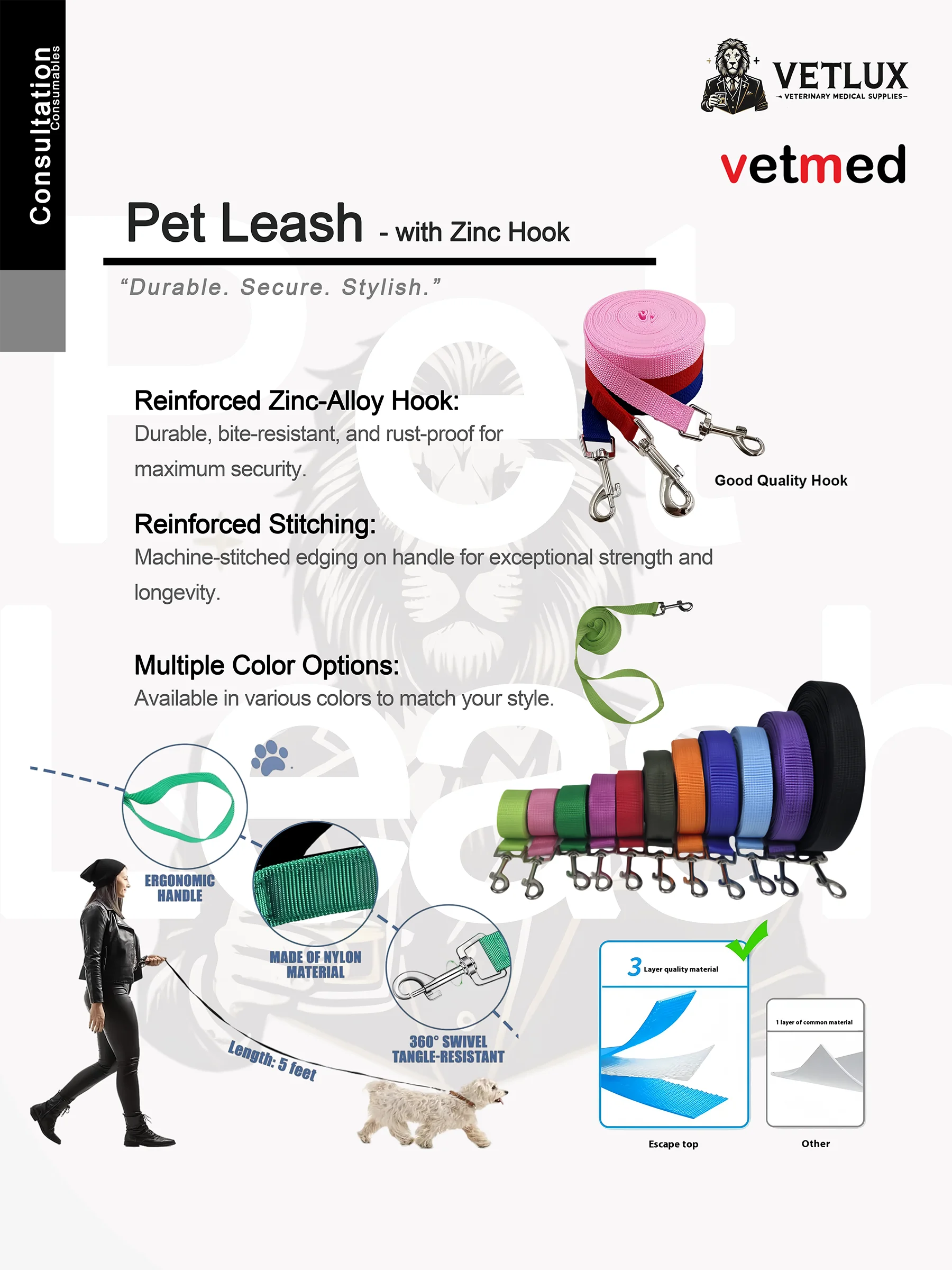 VETLUX Pet Leash – with Zinc Hook – Durable. Secure. Stylish.